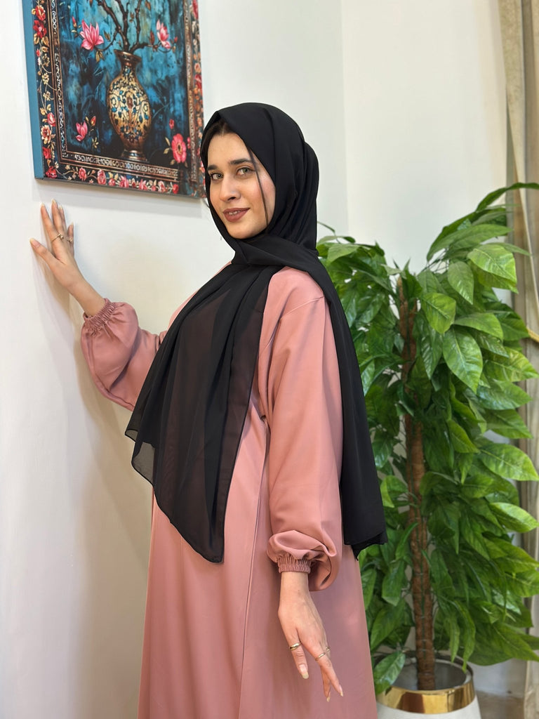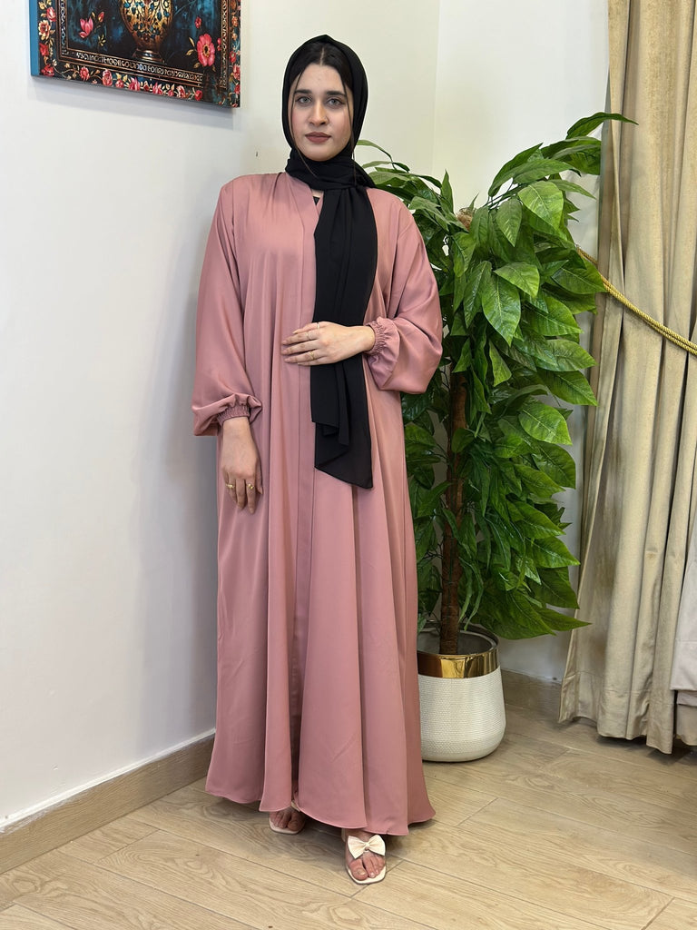 This front open abaya is both sophisticated and unique, featuring elastic sleeves and a beautifully pleated back. It offers a modern twist on a classic design, providing a stylish alternative to plain abayas and is perfect for making a statement.