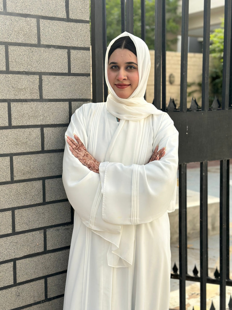 Elevate your wardrobe with the *Pearl Poise Pleated Abaya, a masterpiece of refined elegance crafted from premium **Summer Nidah* fabric. Designed for warm-weather comfort, this abaya is lightweight, breathable, and effortlessly graceful. The *soft off-white hue* exudes understated luxury, while the *delicate pleated detailing* along the front and sleeves adds a sophisticated texture. Perfect for both daytime serenity and evening sophistication, this abaya is the epitome of timeless charm.