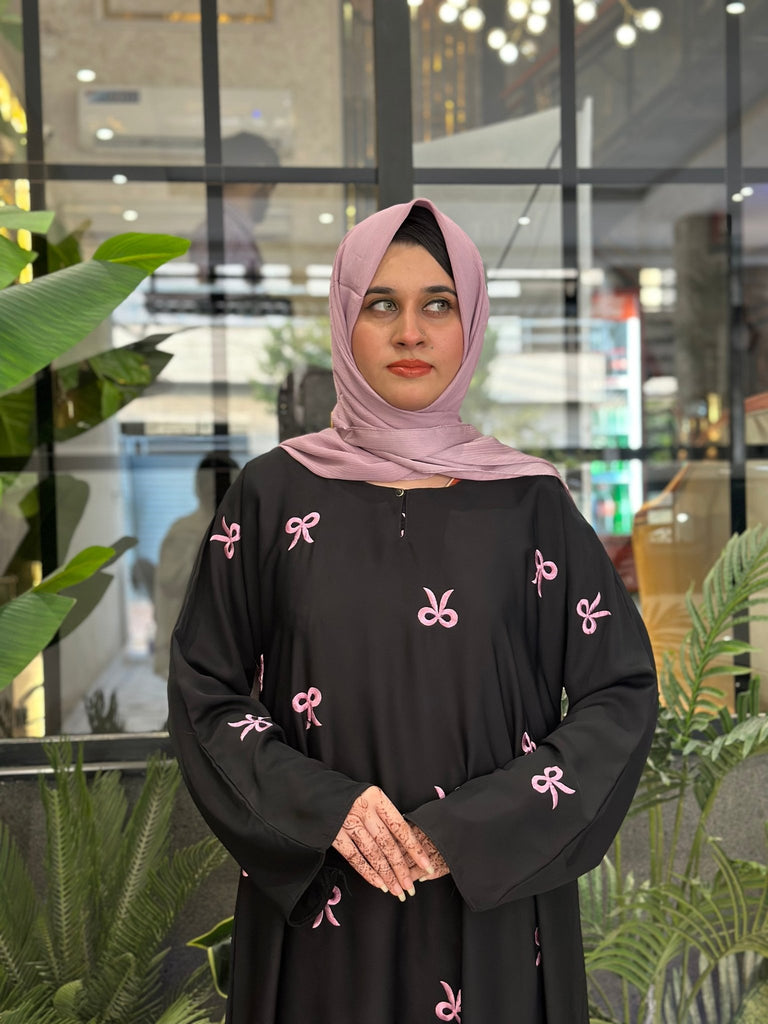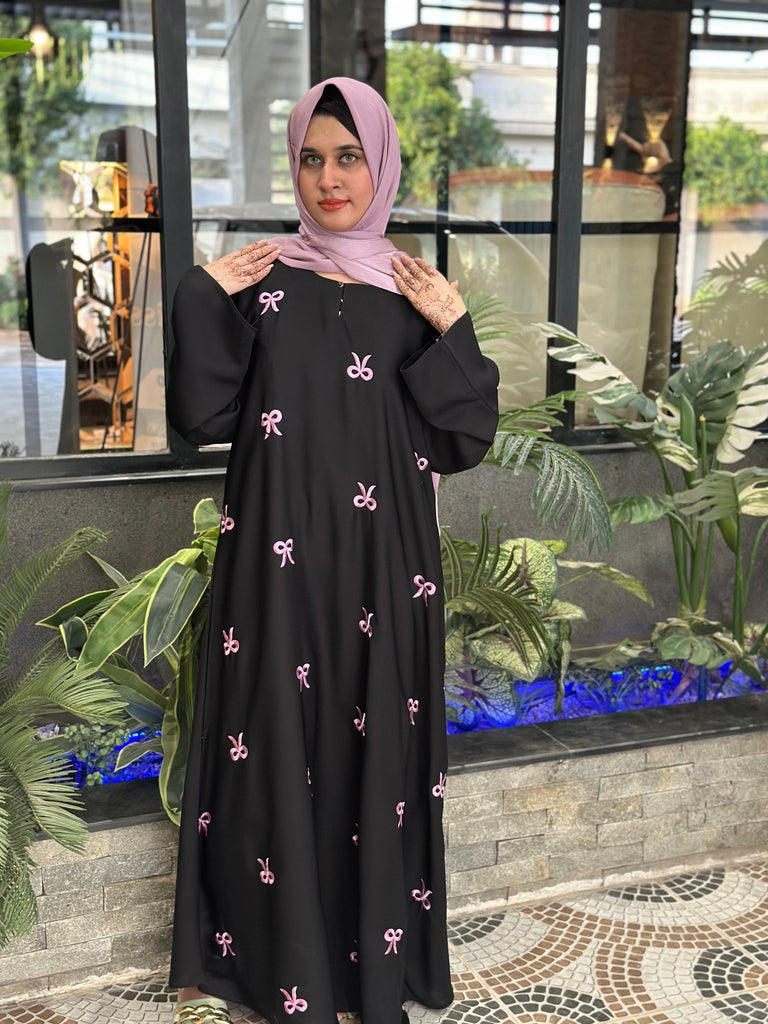 Indulge in graceful sophistication with this *chocolate brown* wave-style abaya, designed to flow effortlessly with every movement. Adorned with *delicate stone work*, this piece catches the light beautifully, adding a subtle shimmer to its rich hue. The wave-inspired silhouette enhances its elegance, offering a refined and structured look. Perfect for special occasions or evening wear, this abaya merges tradition with modern glamour, making it a timeless statement in modest fashion.