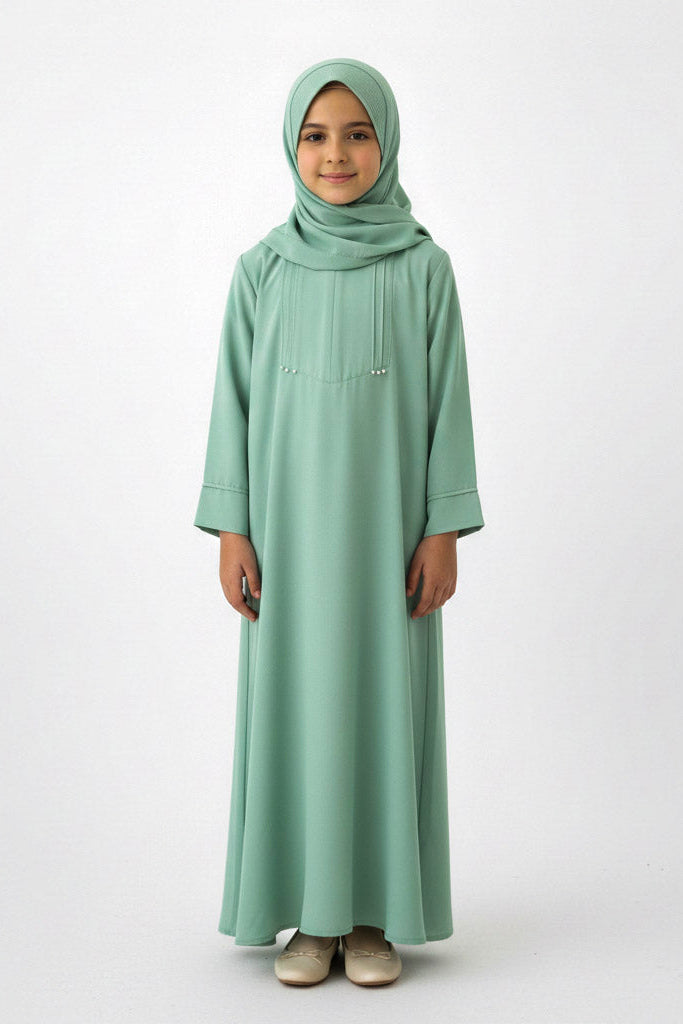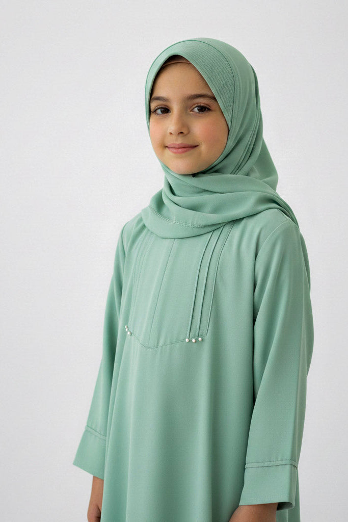 Introduce your child to modest elegance with this Kids Basic Plaited Abaya. Crafted with attention to detail, this timeless piece features subtle plaited detailing that adds dimension without compromising simplicity. The relaxed silhouette ensures comfortable movement for active children, while the quality fabric maintains its shape through regular wear. Perfect for everyday occasions, prayers, or special gatherings, this abaya combines traditional styling with practical design. Available in classic colors that complement any wardrobe, it's an essential addition to modest fashion collections for young girls.