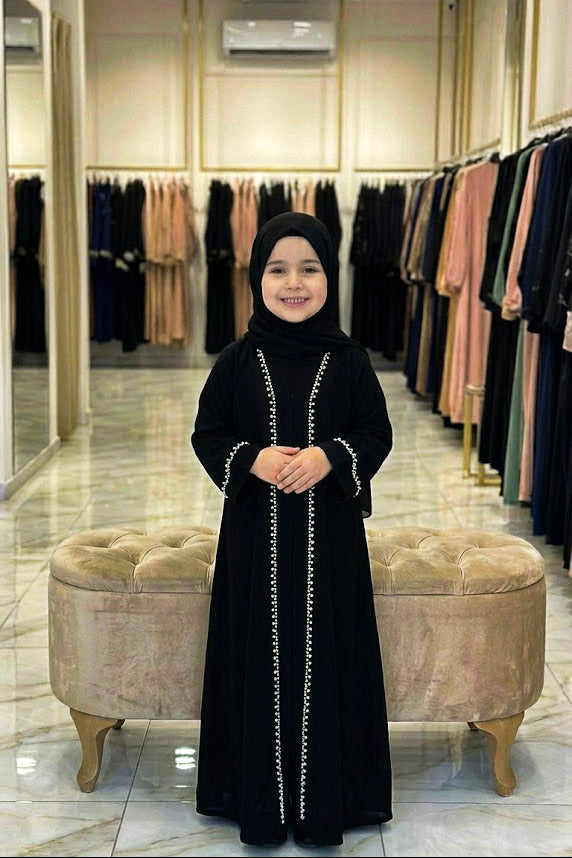 Introduce your child to timeless elegance with this Classic Pearl Lace Kids Abaya. Crafted with delicate pearl-embellished lace detailing, this piece combines traditional modesty with contemporary style. The flowing silhouette ensures comfort and ease of movement, making it perfect for special occasions, religious celebrations, or everyday wear. Premium fabric quality guarantees durability through active play and frequent wear. Available in versatile colors that complement any complexion, this abaya teaches young ones the value of modest fashion while allowing them to express their personal style with confidence.