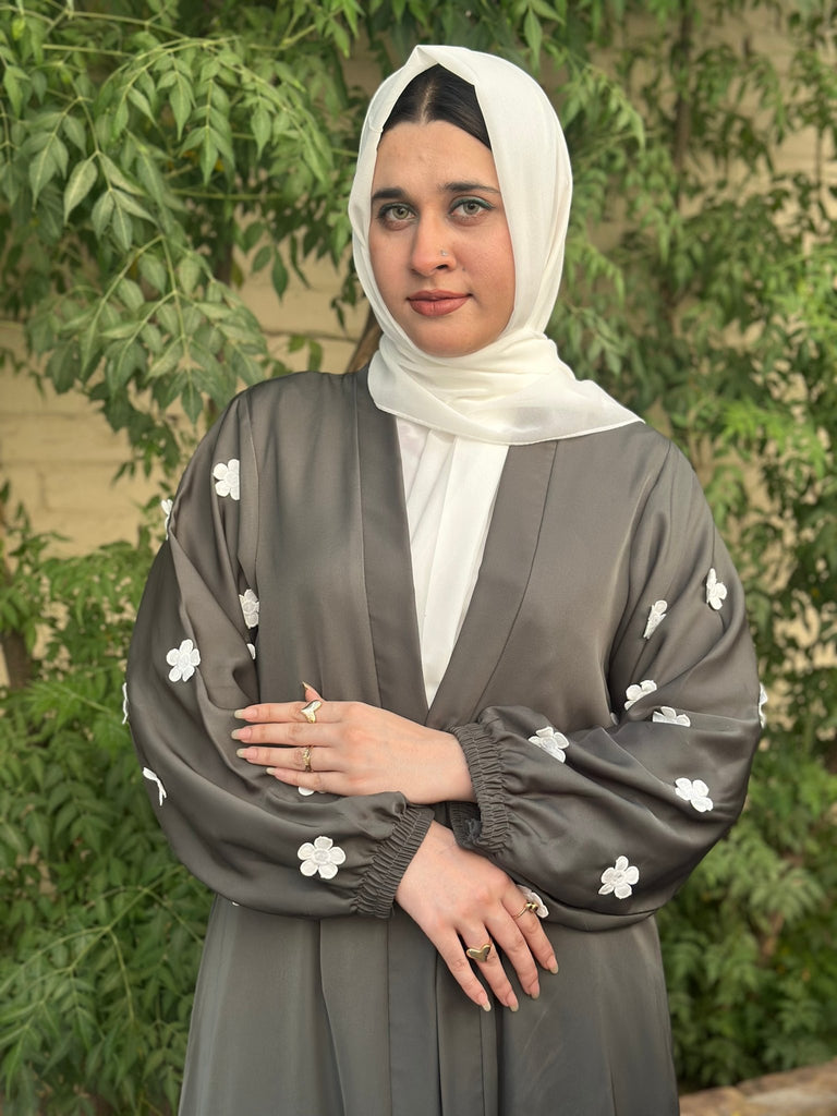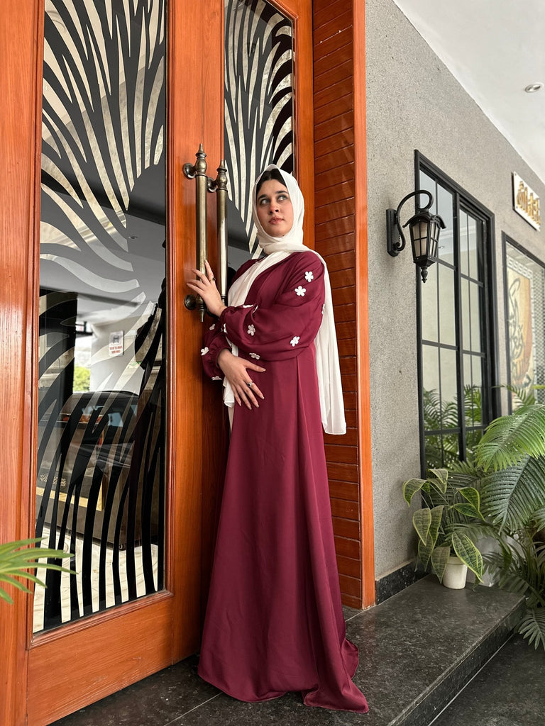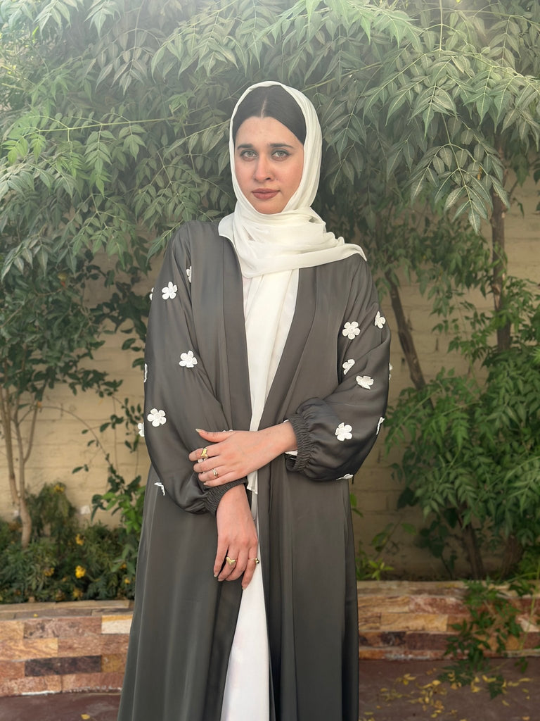 Step into elegance with our floral Abaya, now enhanced with exquisite floral embellishments. This abaya is designed to offer both comfort and style, making it a perfect addition to your wardrobe.