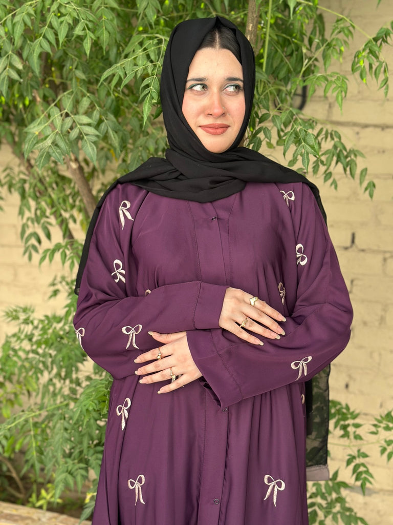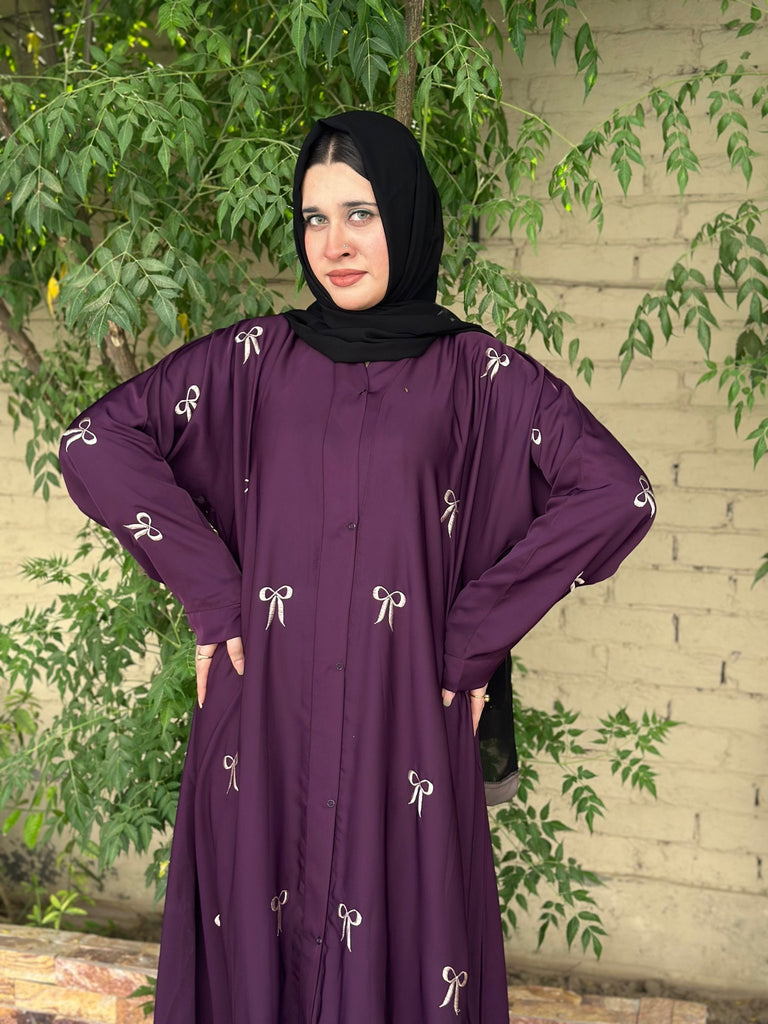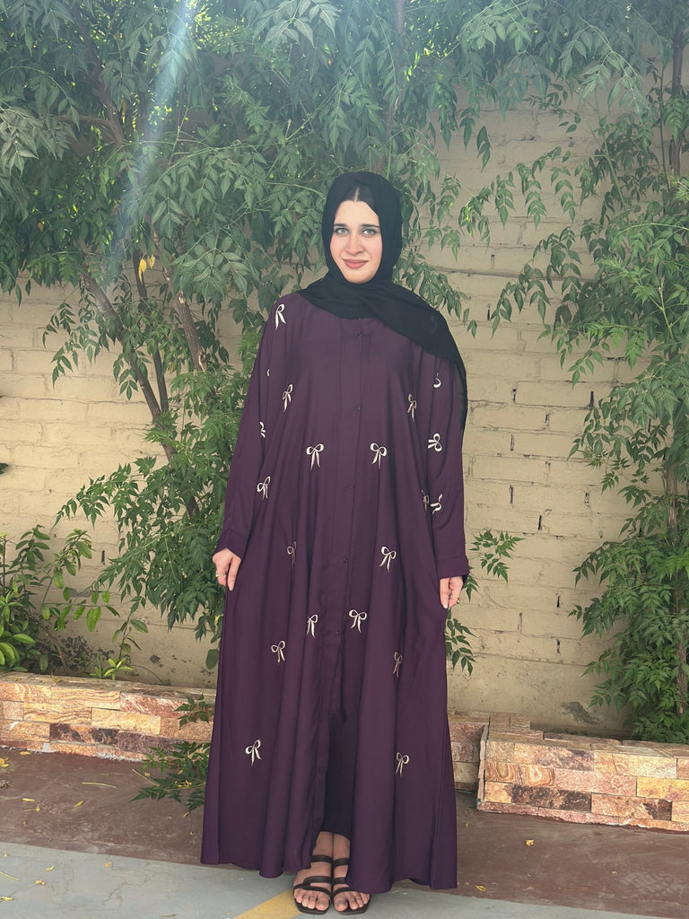 Gracefully designed in soft and breathable Nidah fabric, the Emira Bow Abaya features elegant bow embroidery on the front, adding a playful yet poised charm to the classic silhouette. Its lightweight texture and feminine detailing make it perfect for day-to-night wear, blending modern style with modest fashion effortlessly.