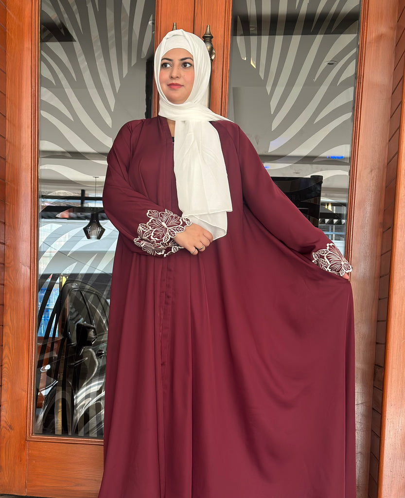 The Mehroon Majesty Embroidered Abaya radiates classic luxury with its rich, deep mehroon tone. Delicate embroidery enhances the graceful silhouette, giving it a regal and refined look. Crafted for women who appreciate timeless fashion, this abaya is perfect for festive gatherings, formal events, or elegant evening wear. Its flowy drape and premium finish make it a standout piece in any wardrobe